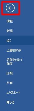 ちなみにメニューから文書の編集画面に戻るには、左の青い帯の一番上にある丸に左矢印をクリックします。