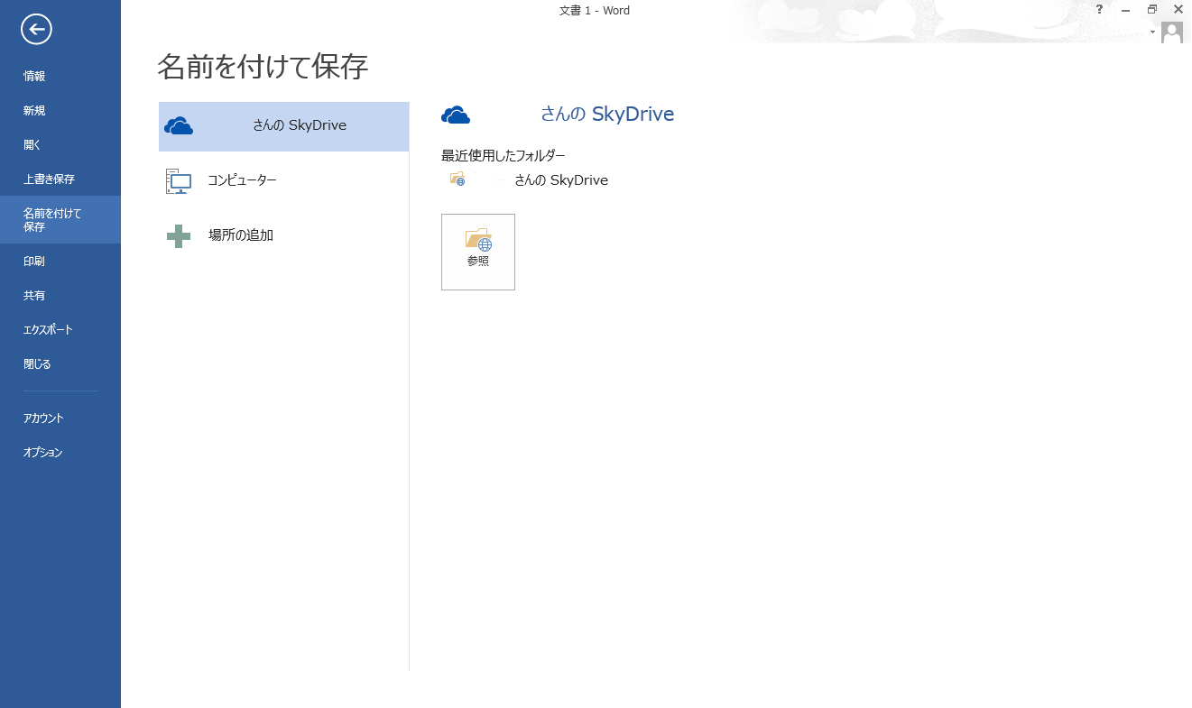以下の画像では「SkyDrive」というのがありますが、無いこともあります。